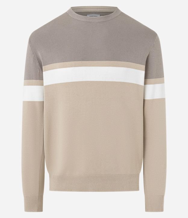 Suéter Regular em Viscose com Bloco de Cores Cinza/Branco/Bege