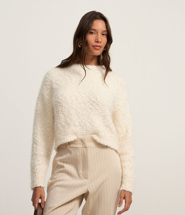 Suéter feminino confeccionado em tricô mais quentinho, no modelo slim com gola redonda, manga longa ajustada e pelinhos.