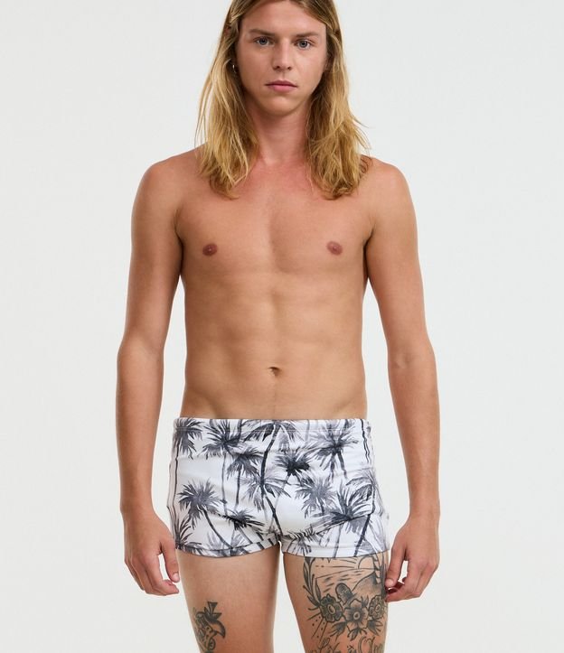 Sunga Boxer em Microfibra com Estampa de Coqueiros Branco