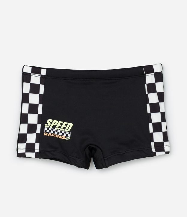 Sunga infantil confeccionada em microfibra leve, de modelo boxer. Possui amarração interna na cintura, estampa xadrez e lettering "Racing" e proteção UV.