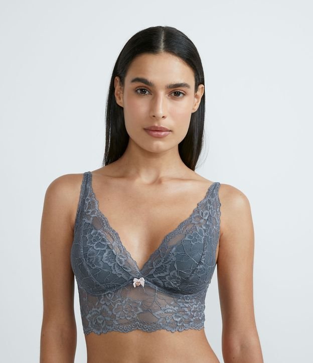 Sutiã Alongado em Renda Floral sem Bojo e Aro com Barra Larga