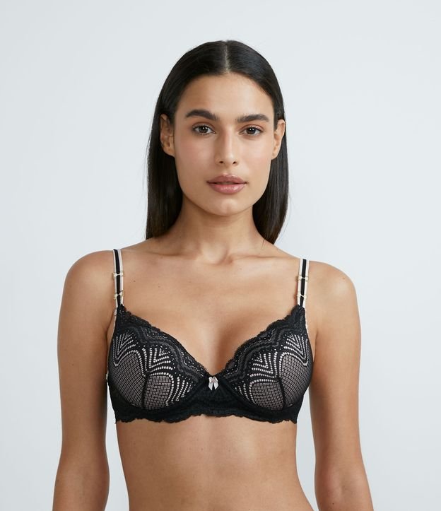 Sutiã Base em Renda com Bojo Oco e Alça Sobreposta Contrastante