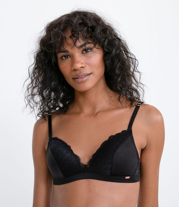 Sutiã com Bojo Triangular Liso com Renda em Microfibra
