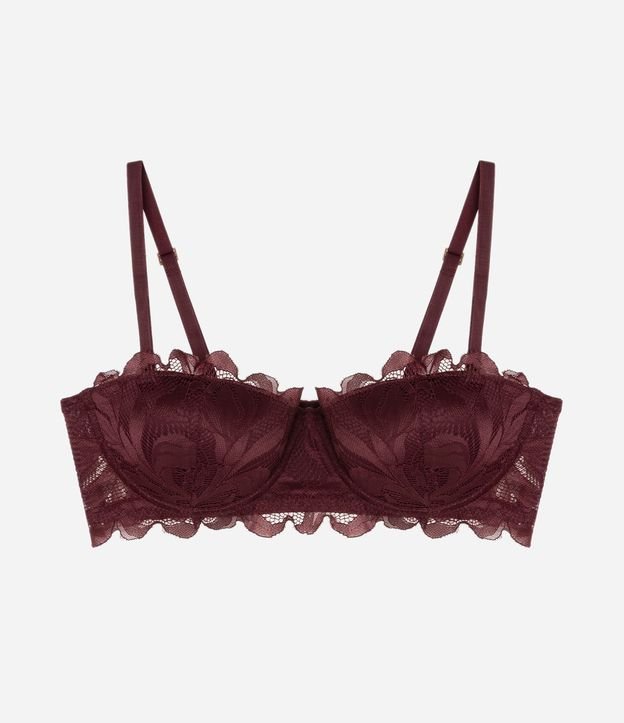 Sutiã Sem Alça em Renda Rústica Floral com Bojo Oco Vinho