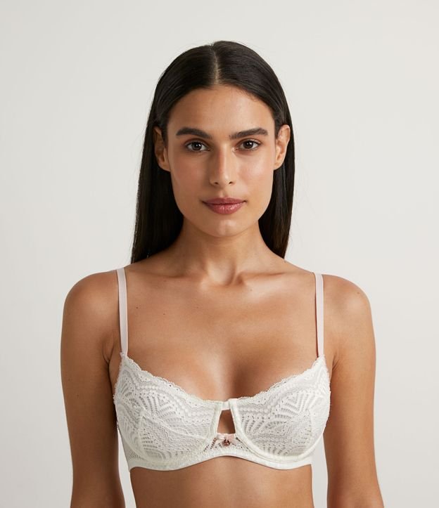 Sutiã Sem Bojo Com Aro em Renda Floral com Detalhe de Tule e Alças Contrastantes