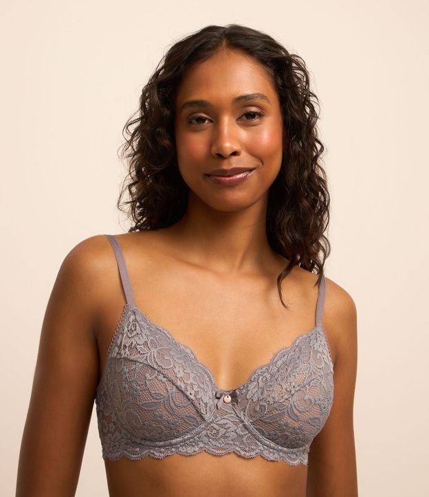 Sutiã Sem Bojo e Com Aro em Renda Floral Cinza