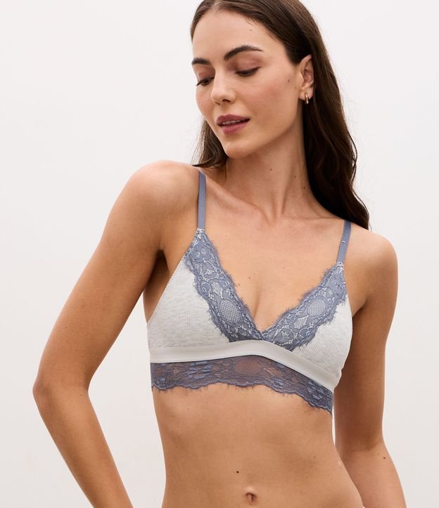 Sutiã Sem Bojo em Viscose Texturizada com Renda Contrastante Cinza