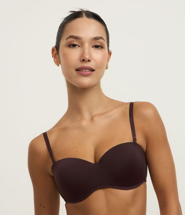 Sutiã Tomara que Caia em Poliamida com Bojo Oco e Alça Removível Marrom Escuro
