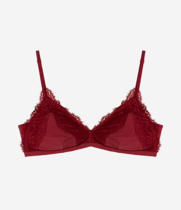 Sutiã Top em Microfibra com Detalhes em Renda e Bojo Removível Vermelho