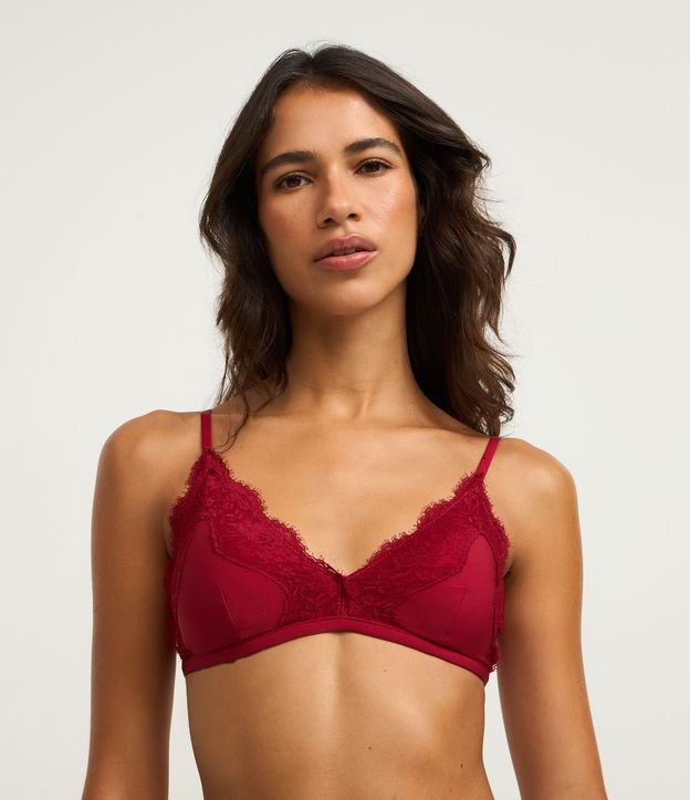 Sutiã Top em Microfibra com Detalhes em Renda e Bojo Removível Vermelho