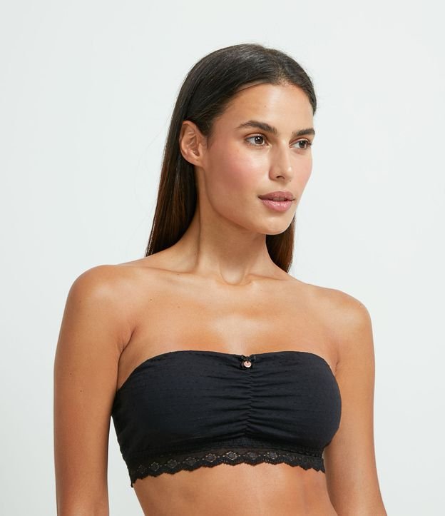 Sutiã Top Faixa com Bojo em Algodão Texturizado com Renda