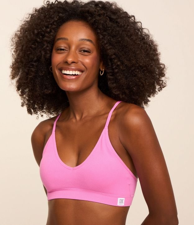 Sutiã Top sem Bojo em Microfibra com Textura Canelada Pink