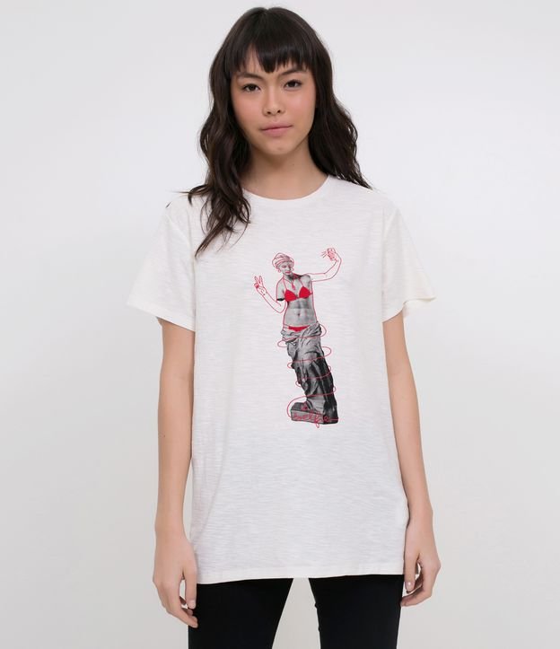 T Shirt com Bordado Vênus de Milo Selfie