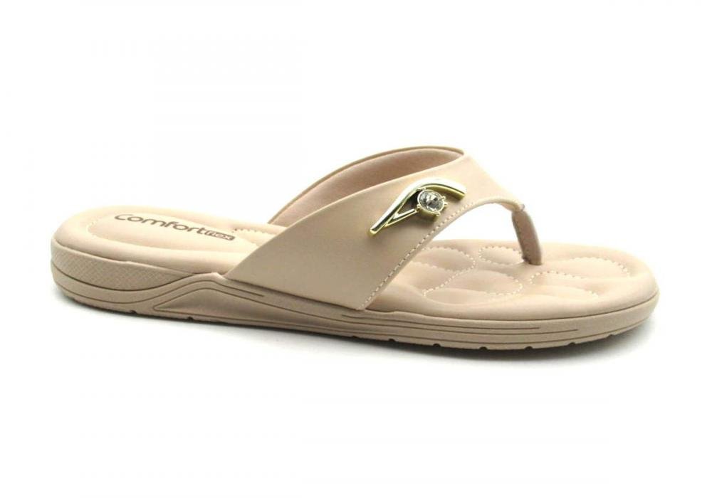 Tamanco Feminino Comfortflex é a escolha perfeita para mulheres que buscam elegância e conforto em um só calçado.Com um design clássico e cor neutra, este chinelo rasteiro é confeccionado em material macio, proporcionando uma sensação de bem-estar ao longo do dia. Combina facilmente com diferentes estilos de roupas, seja para um look casual ou mais formal. ESPECIFICAÇÕES:Material: PU com detalhes em metal dourado.Salto: Rasteiro Flatform de 2 cm.Solado: emborrachado - antiderrapante, flexível e resistenteNão perca a oportunidade de adquirir o seu Comfortflex!