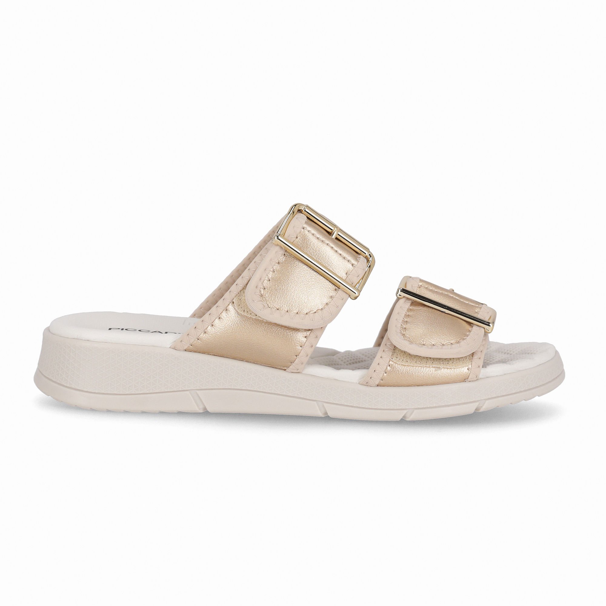 Tamanco Esporão Anabela Médio Ouro com Marfim Dourado