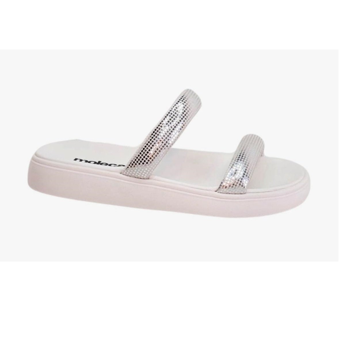 Tamanco Feminino Moleca Papete Tiras Brilho Branco