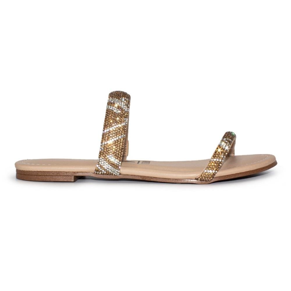 Tamanco Flat Vizzano Feminino Strass Casual 6235.1189 Bege/Dourado