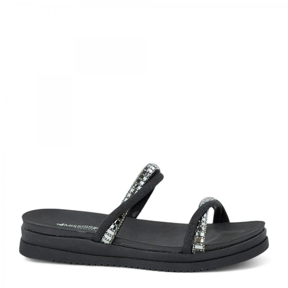 Tamanco Papete Casual Brilhantes Mississipi Feminina Preto