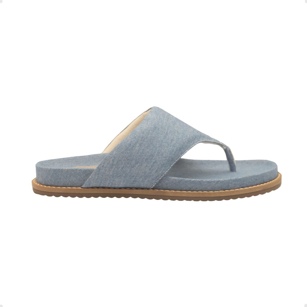 Tamanco Papete Feminino Dayane Magalhães da nova coleção Mirage confeccionado em tecido jeans com solado flat e cabedal acolchoado moderno.