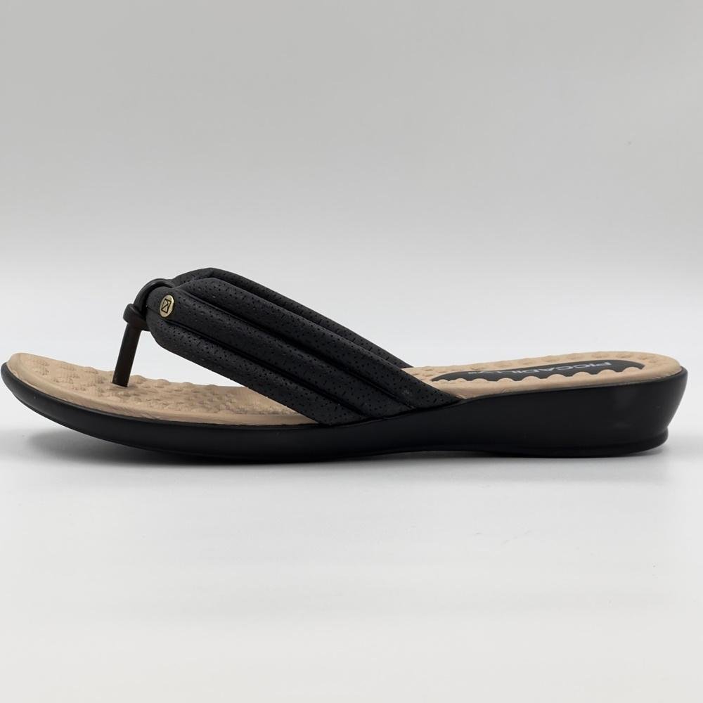 Tamanco Piccadilly De Dedo Tira Larga Rasteiro Feminino Preto