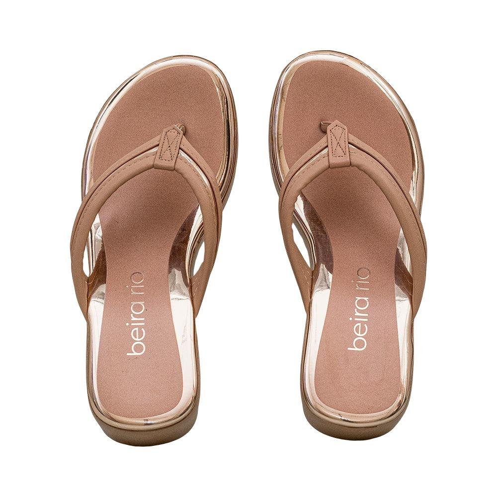Tamanco Plataforma Nude e Ouro Rosado Borda Metalizada | Beira Rio
