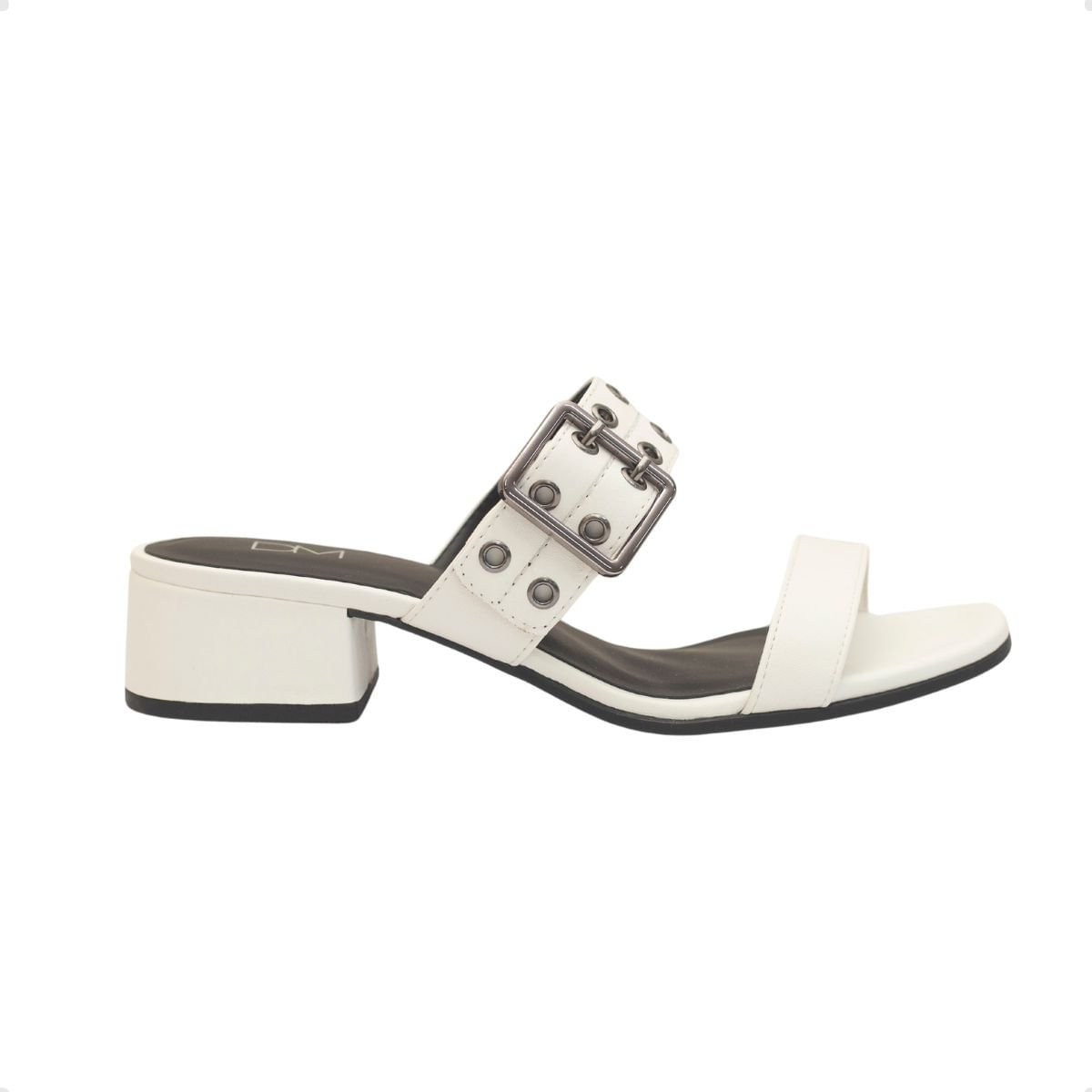 Tamanco Salto Bloco Aura Dayane Magalhães Fivela Branco