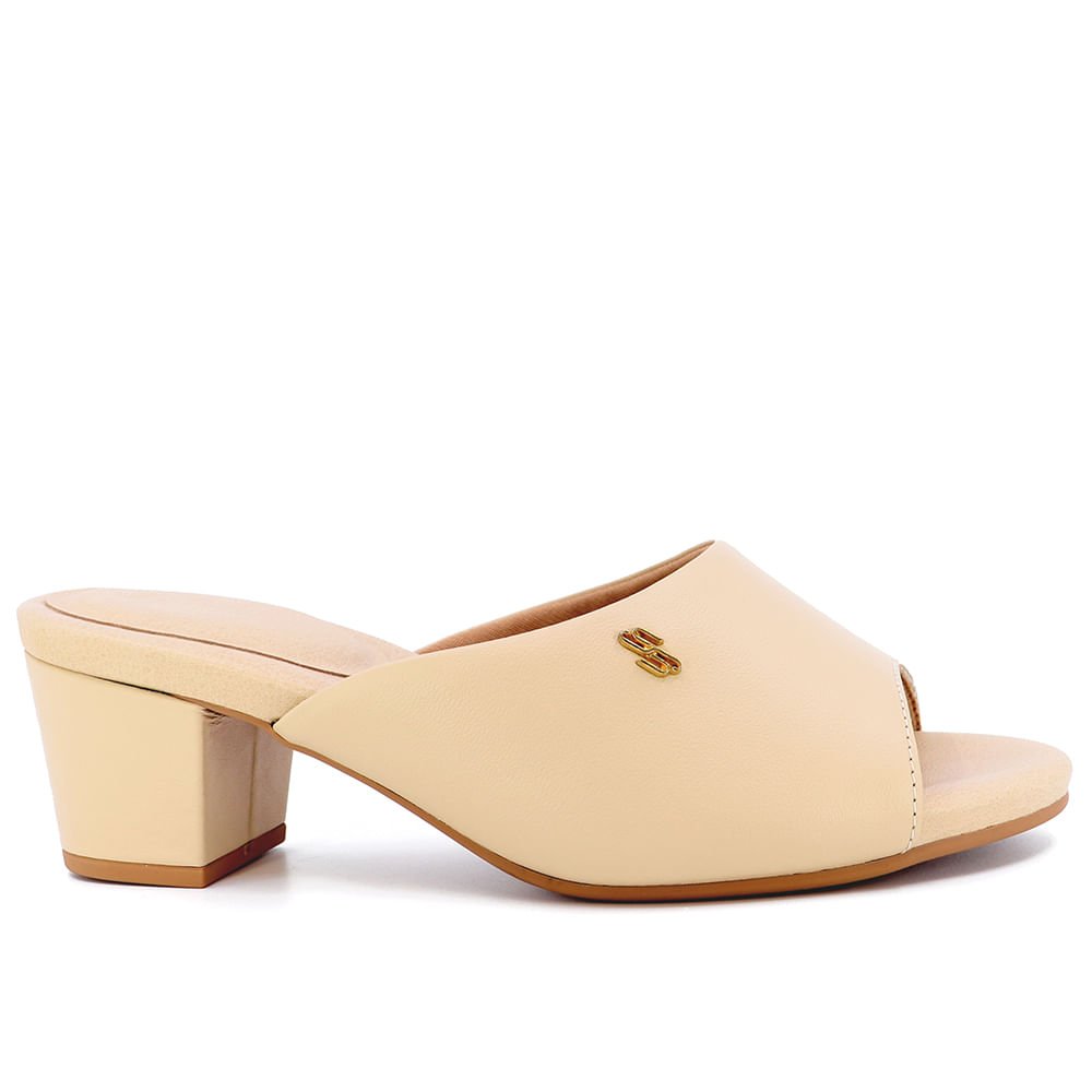 Tamanco Salto Bloco Couro Bege Básico Bege