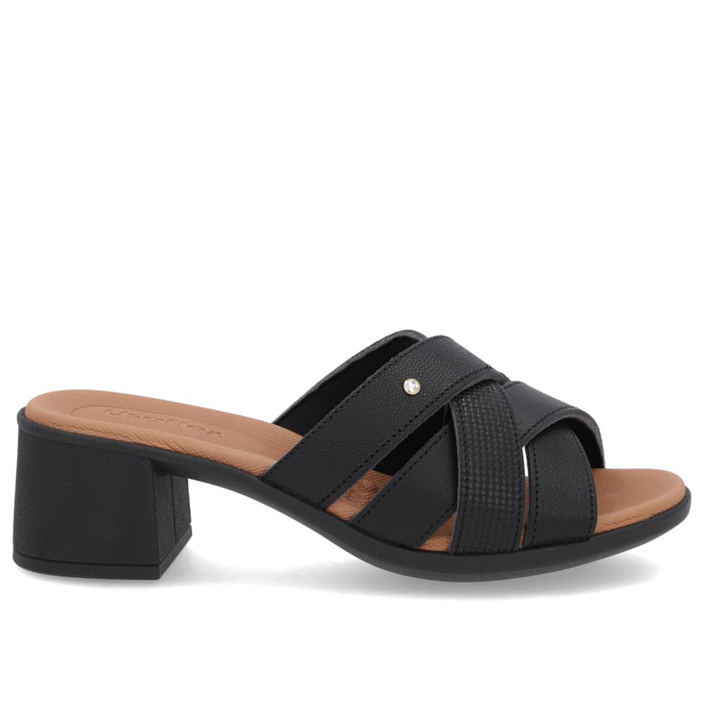 Tamanco Salto Bloco Couro Preto Tiras Preto