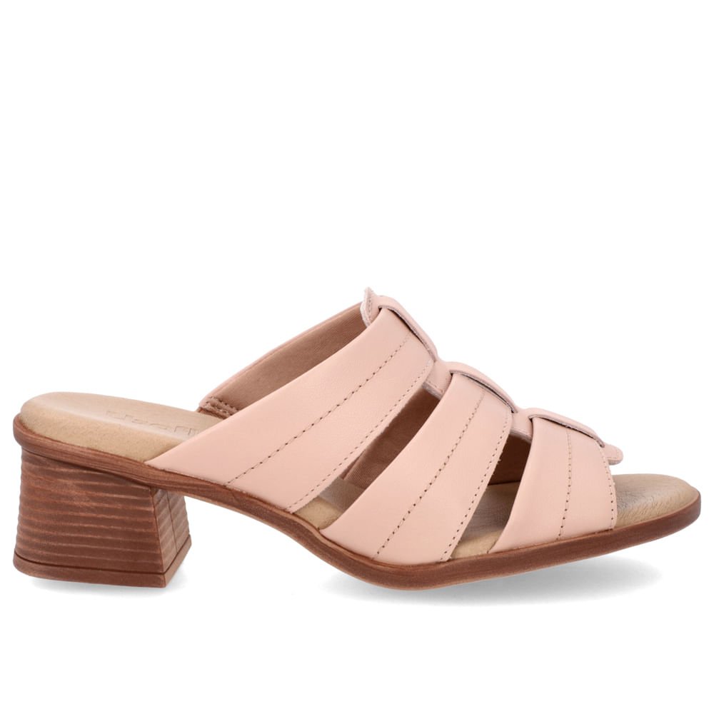 Tamanco salto bloco cabedal em couro napa valise na cor rose duna. O modelo possui tecnologia Couro, com conforto, maciez e durabilidade.