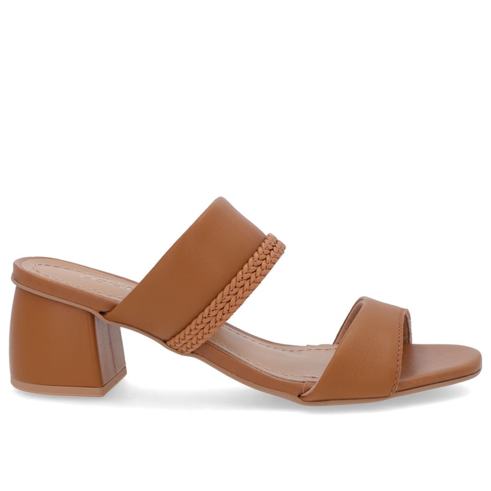 Tamanco Salto Bloco Tira Trançada Couro Marrom