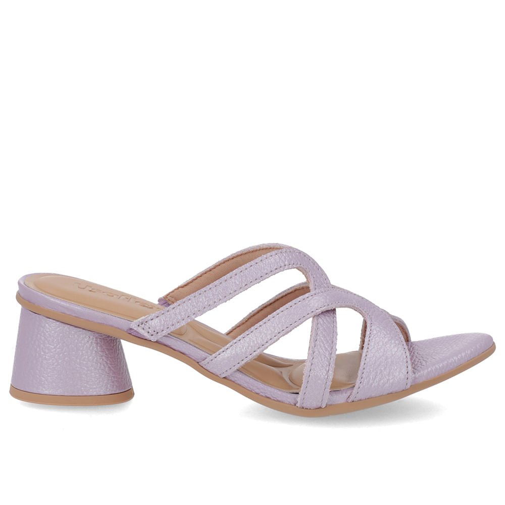 Tamanco Salto Geométrico Couro Lilás Perolado
