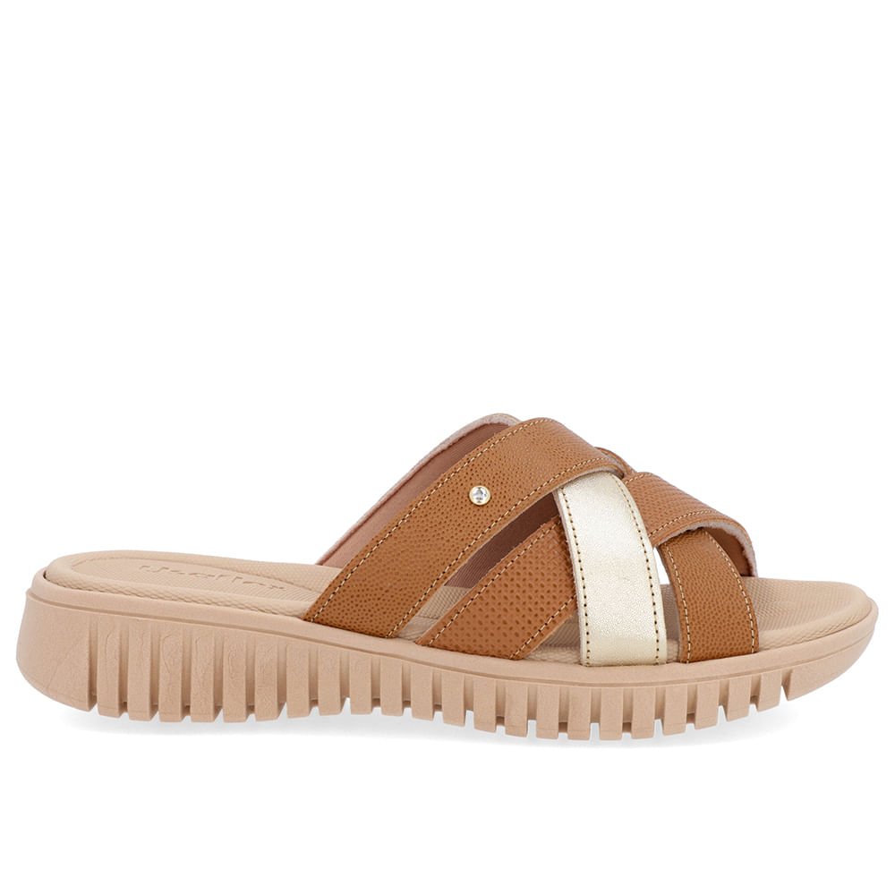 Tamanco Salto Plataforma Couro Marrom Tiras