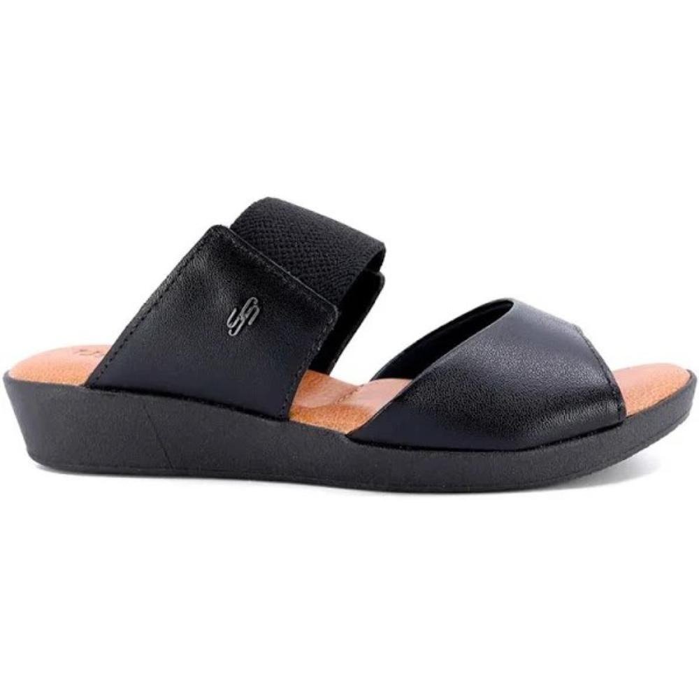 Tamanco plataforma em couro napa valise preto. O modelo possui tecnologia Sola+Conforto, um solado com altura entre 2 e 4cm de salto que distribui o peso corporal na pisada.|Praticidade e estilo é o que o tamanco em couro preto oferece. Conta com salto anabela e monograma Usaflex, dando um charme especial ao modelo.