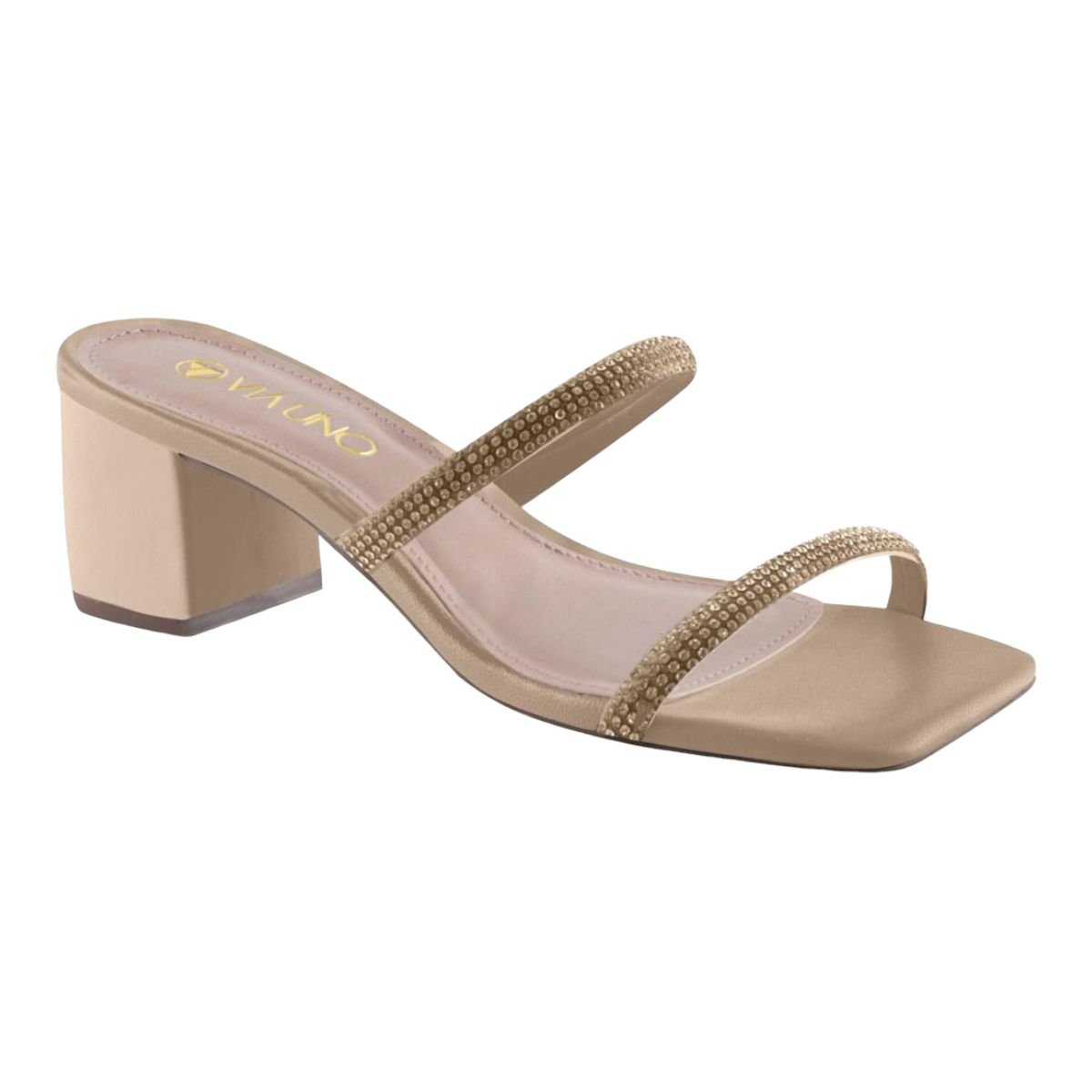 Tamanco Via Uno 588035 Salto Grosso Baixo Brilho Festa Feminino