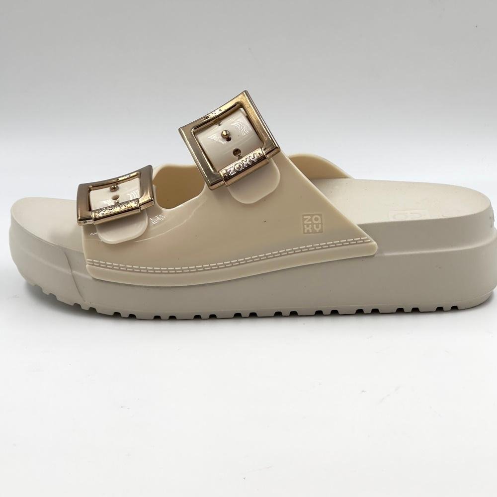 Tamanco Zaxy Slide Plataforma Tira Dupla com Fivela Feminino Branco