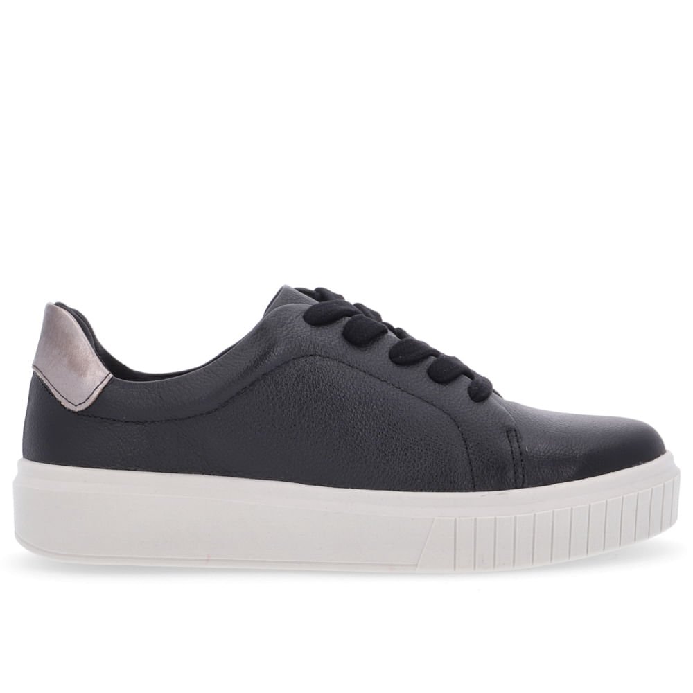 Tênis cabedal em couro napa tênis na cor preto e soft slim aço, fechamento cadarço. O modelo possui tecnologia Antibacteriano, com forro que reduz a propagação de fungos e bactérias.
