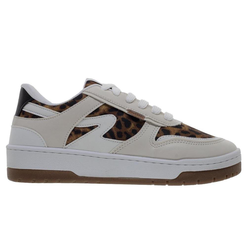 O Tênis Casual Feminino Anacapri c306030004 Branco, modelo é todo estiloso! Confeccionado em tecido de lona, com detalhes em pespontos delicados com tons harmoniosos. O modelo com cadarços em cor offwhithe, com solado apresentando um leve salto emborrachado branco, com textura na biqueira e parte traseira, contendo detalhe em onças por todo cabedal. Biqueira arredondada, com assinatura Anacapri.