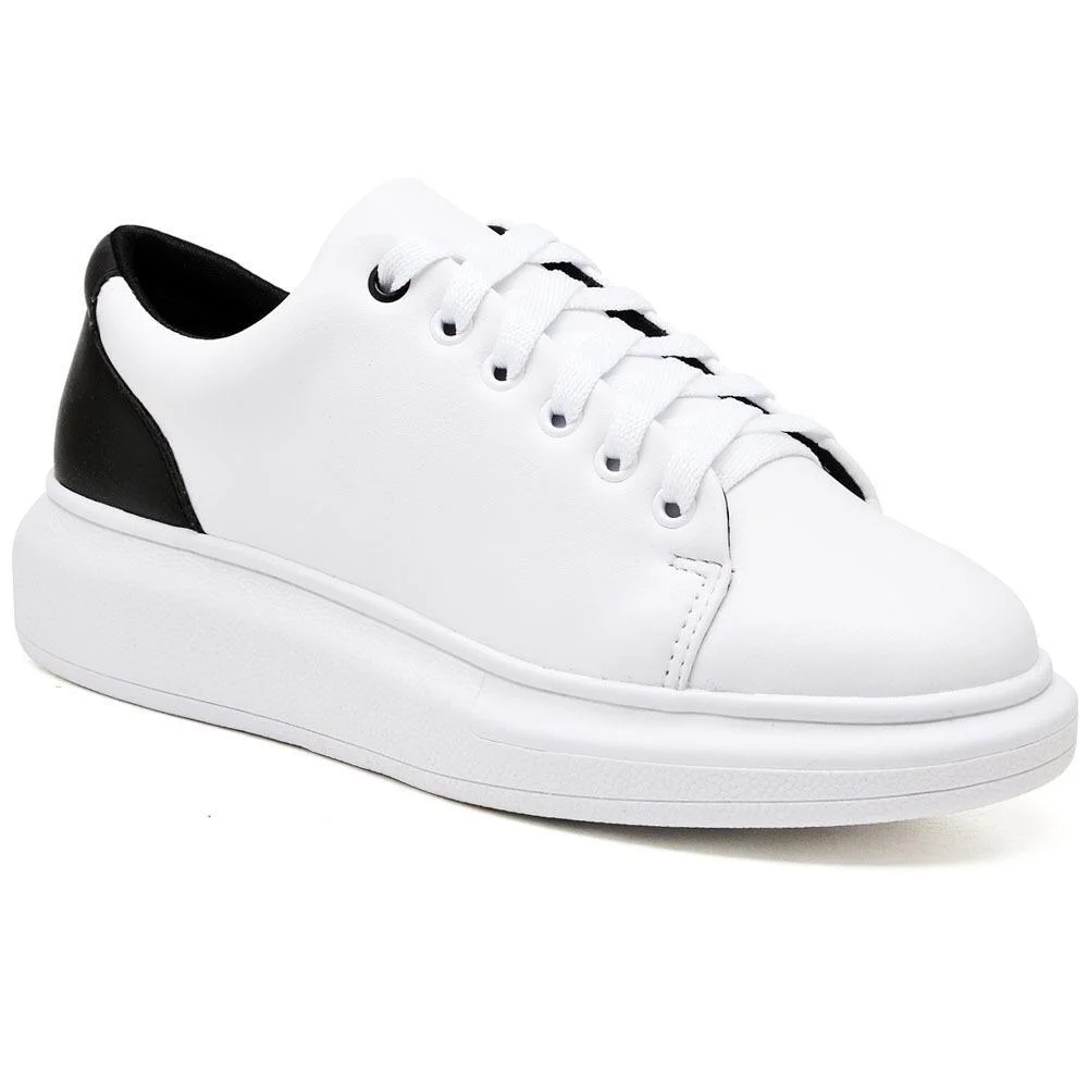 Tênis Casual Feminino Cadarço Cano Baixo Dia a Dia Branco