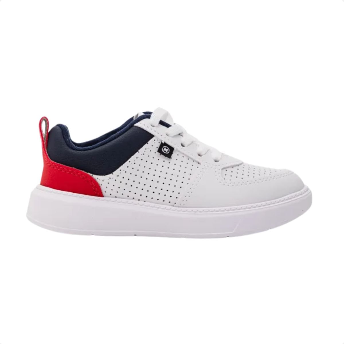 Tênis Casual Infantil Molekinho Em Napa Branco Branco/Vermelho/Marinho