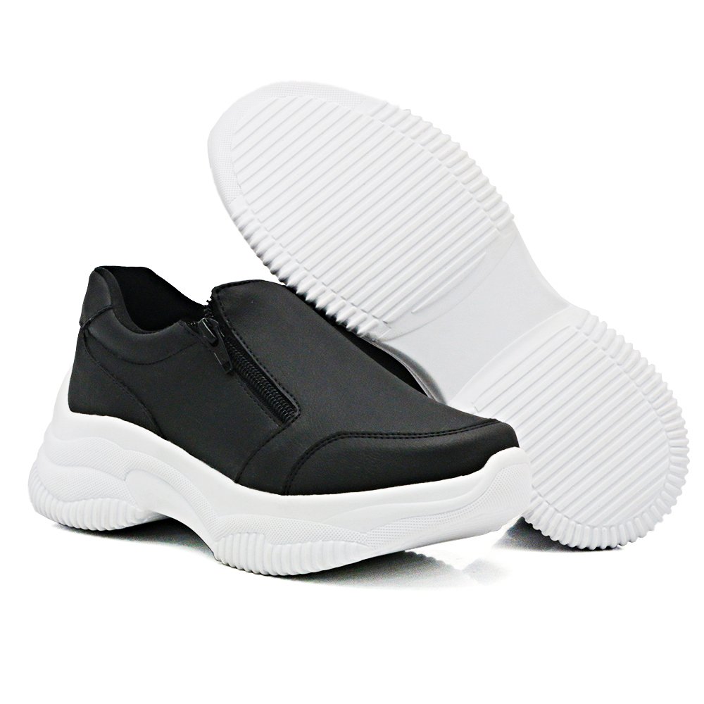 Tenis Chunky Yoyo Store sem Cadarço com Ziper e Recortes Sola Alta Detalhada Preto