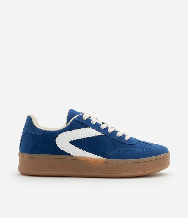 Tênis Chuteira com Efeito Camurça e Recortes Azul