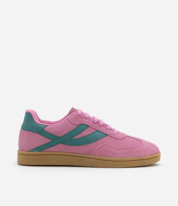 Tênis Chuteira em Couro com Cadarço e Detalhe Lateral Rosa