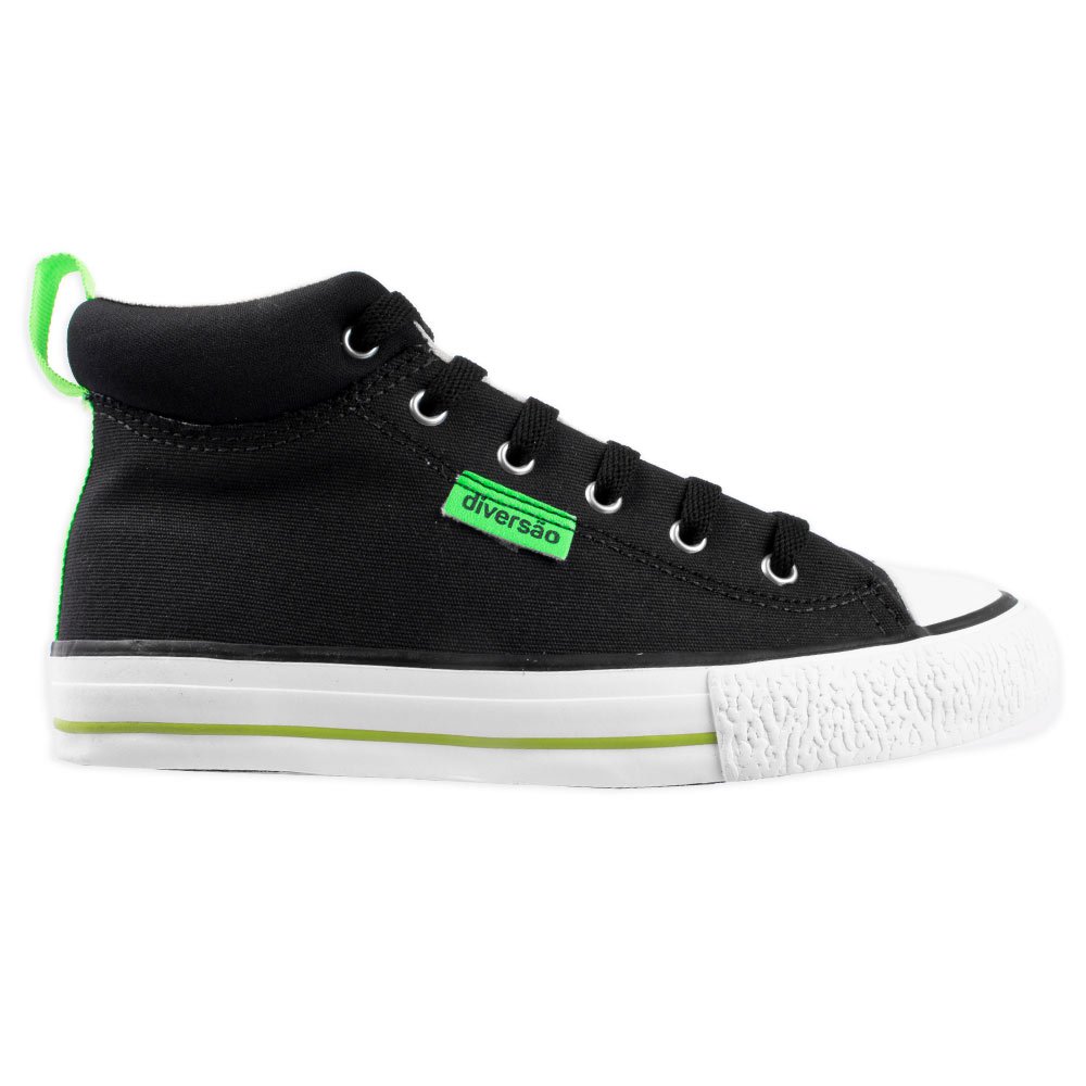 O Tênis Diversão Mini Kim é confeccionado todo em material têxtil e apresenta um design clássico. Todo de tecido têxtil, biqueira em material sintético e solado de borracha vulcanizada, ele é macio e resistente, além de contar com um calce fácil de amarração. Seu design é predominante na cor preto e com detalhes em verde no calcanhar e na entressola. A Diversão possui sapatos com muito estilo, confortáveis e com detalhes que fazem a diferença! Não perca tempo e adquira já para o seu (a) filho (a).