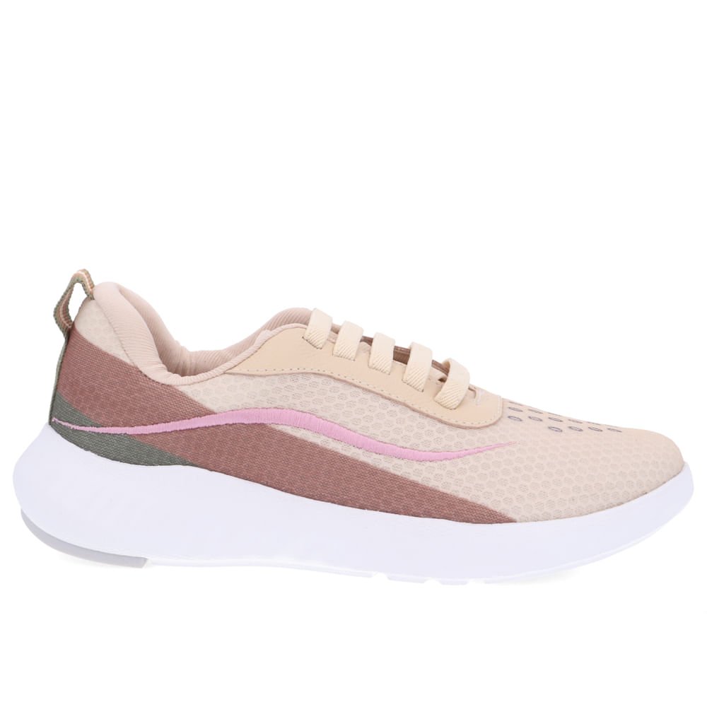 Tênis Esportivo Bege Tecido Detalhe Colorido