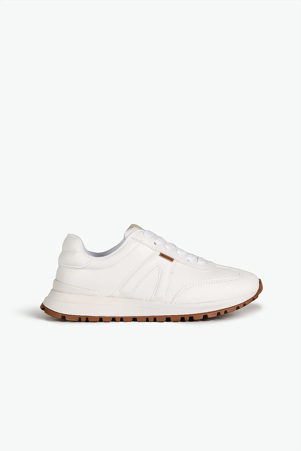 Tênis Miss Port. O modelo com solado comfy esportivo e tratorado marrom apresenta design de costura pesponto nas laterais e contornos, com recorte em peças em napa branco com efeito texturizado e estampado em animal print de cobra, aplicada na parte aplicadas na lingueta, biqueira e parte traseira. De amarrar por atacadores, possui parte interna forrada. Com aplicação de peça recortada com design em “A” em napa branco estampado e tag lateral marrom Anacapri. Traz nova etiqueta tecida Anacapri bege, aplicada na lingueta.