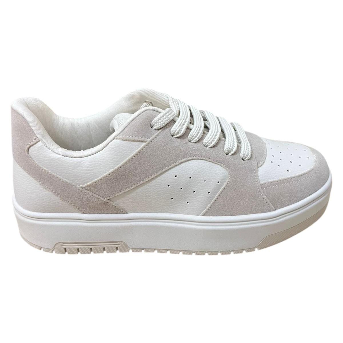 Tenis Feminino Casual Maxi Mundial Creme Cinza
