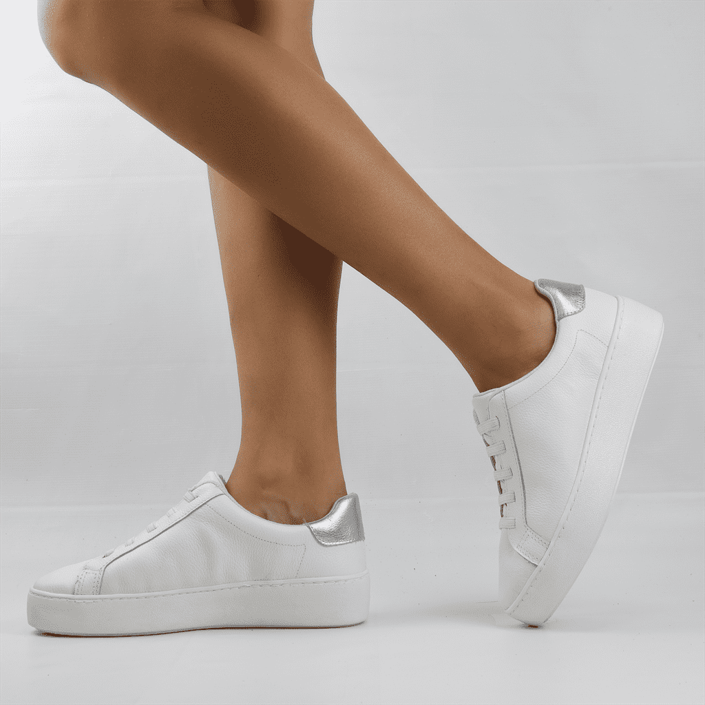• Tênis Flat Amarração Couro Branco 1