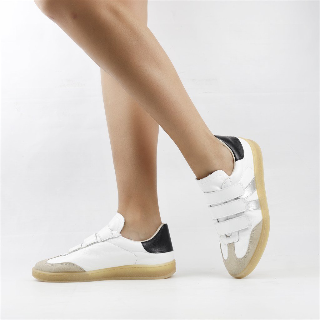• Tênis Flat Couro Marfim/Branco/Prata 2
