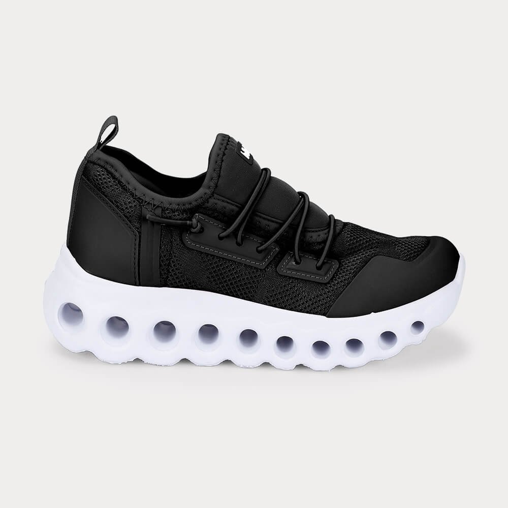 Conforto: Solado de EVA com design inovador, que além de estiloso, absorve impactos proporcionando amortecimento e leveza a cada passo. Design: Na cor preta, esse modelo é feito em material que permite os pés respirarem e é de fácil limpeza. Fácil de calçar: Elásticos no lugar dos cadarços tradicionais oferecem praticidade no calce e autonomia das crianças.