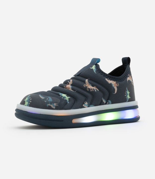 Tênis Infantil Calce Fácil com Estampa de Dinos e Sola com Luzinhas Led -Tam 20 ao 27